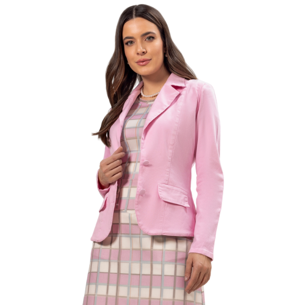 O Blazer Tradicional em Sarja Collor Rosa é a peça perfeita para quem busca estilo e sofisticação em uma única produção. Confeccionado em sarja color de altíssima qualidade, com lavanderia tingida, oferece caimento impecável e conforto no uso diário. Seu design clássico é valorizado pela lapela tradicional, fechamento em botões encapados e aviamentos em banho dourado, que acrescentam um toque refinado e moderno. Uma peça versátil, que pode ser usada tanto em composições elegantes para o trabalho quanto em looks despojados para momentos casuais.