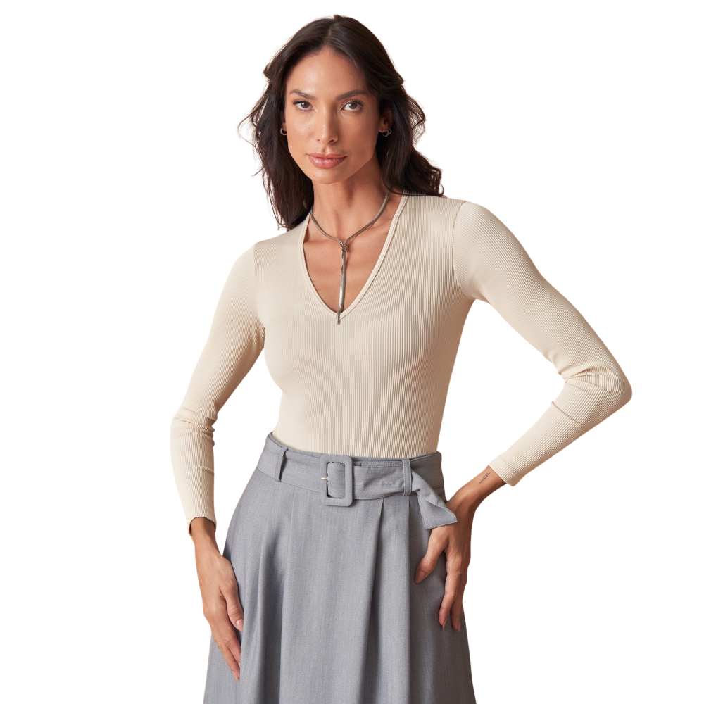 Body Feminino em Tecido Canelado – Manga Longa