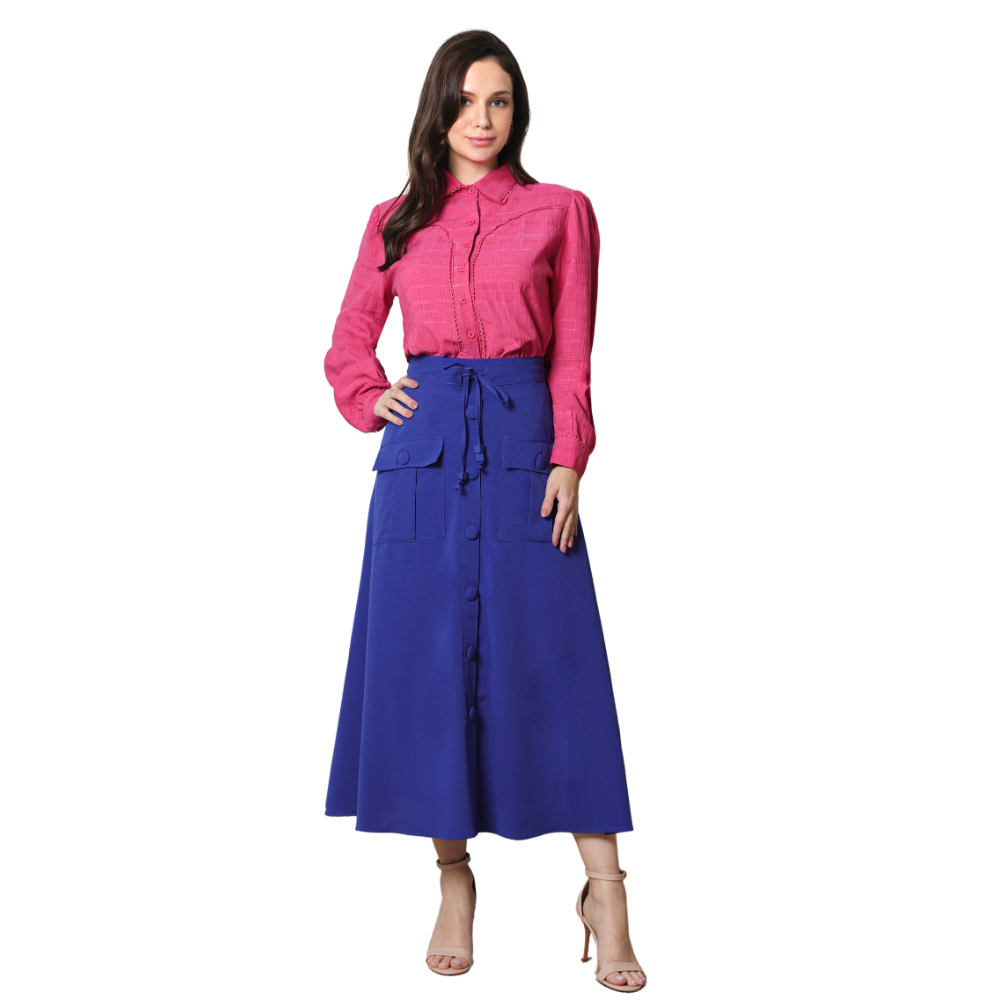A Saia Midi D’azul com Bolsos na Frente é a escolha perfeita para quem busca unir praticidade e elegância. Confeccionada em tecido de alta qualidade, garante ótimo caimento e conforto ao vestir. O destaque fica por conta dos bolsos frontais funcionais, que acrescentam modernidade e charme à peça, tornando-a ideal para composições casuais e sofisticadas. O comprimento midi valoriza a silhueta e oferece versatilidade para diversas ocasiões, do trabalho ao passeio.